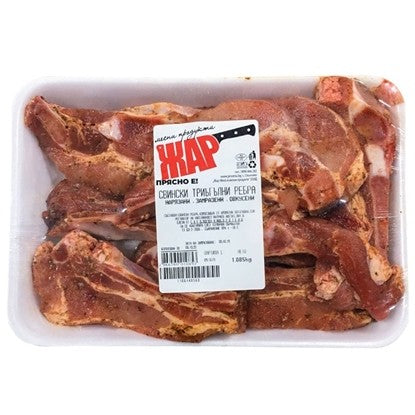 СВИНСКИ НАРЯЗАНИ ТРИЪГ.РЕБРА ЖАР ОВКУСЕНИ - ЦЕНА ЗА КГ.