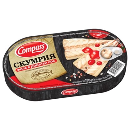 СКУМРИЯ ФИЛЕ КОМПАС 180ГР. С ДОМАТЕН СОС